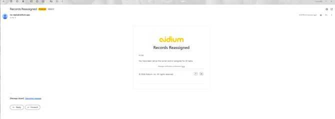 When reassigning tasks, the selected team member will receive a notification if they have Assigned in Bulk enabled. You can also learn more about in-app notifications.